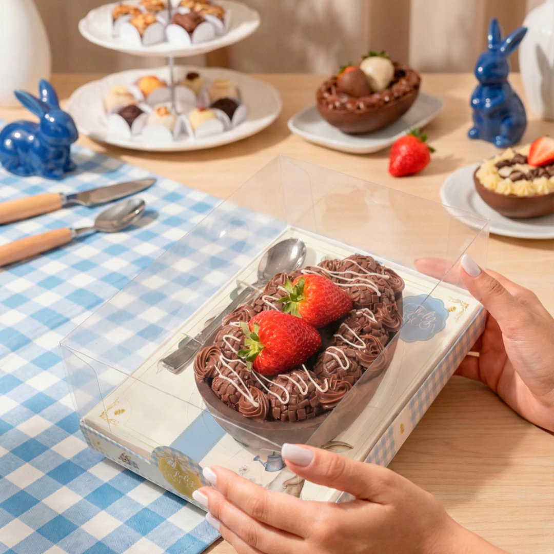 Perfeita para confeiteiros, chocolaterias e para quem deseja presentear na Páscoa com elegância e cuidado em cada detalhe.