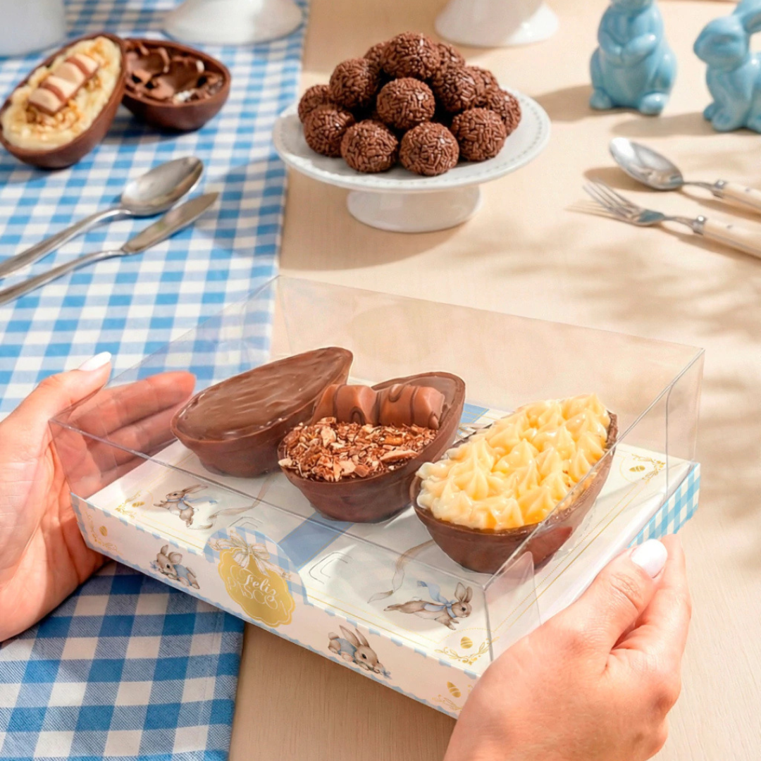 Perfeita para confeiteiros, chocolaterias e para quem busca uma embalagem prática, elegante e com excelente apresentação para a Páscoa.