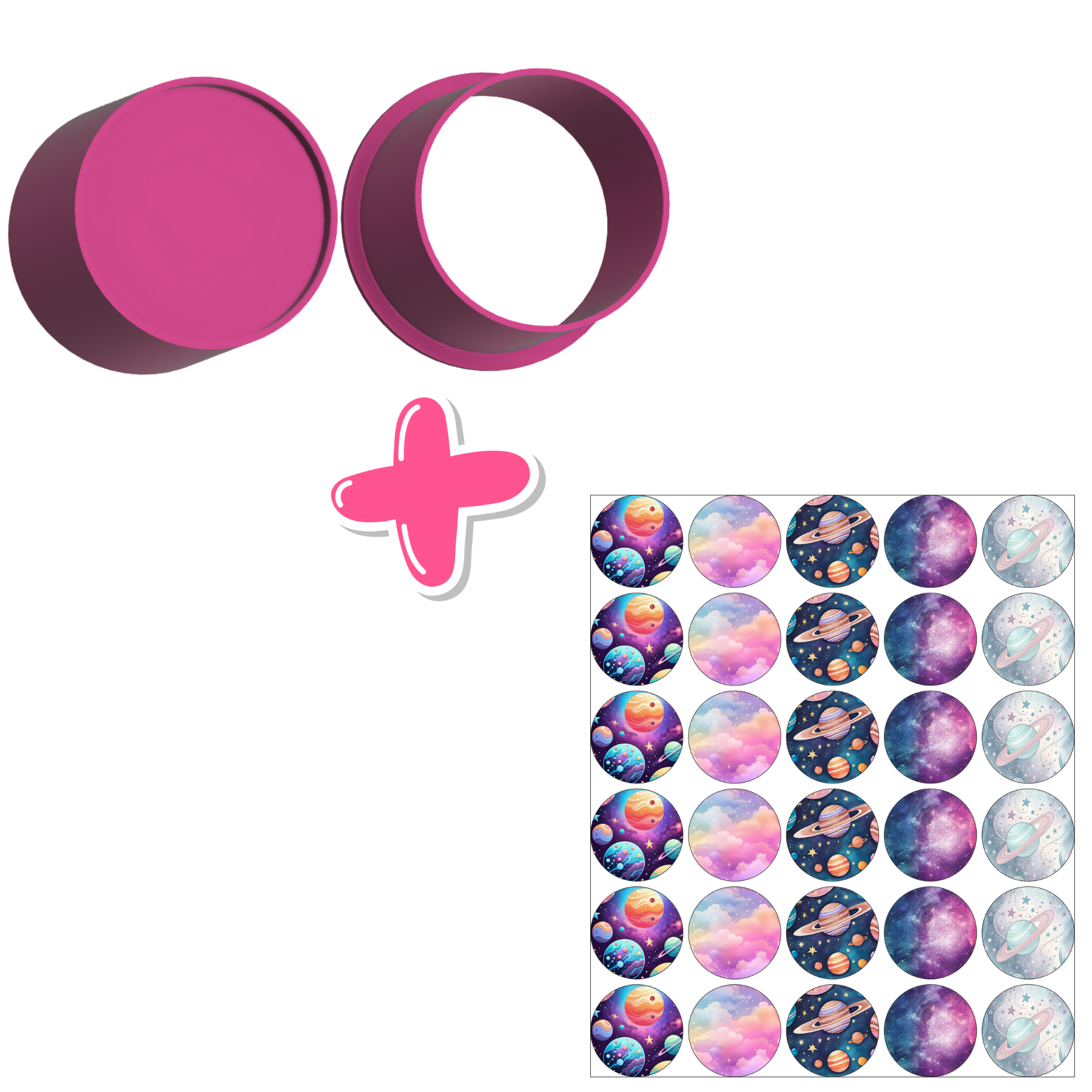 Circulo e Apliques de Papel de Arroz Astronauta - Ejetor Modelador para Brigadeiros