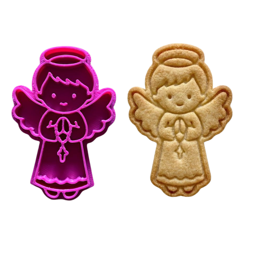 Cortador e Marcador para Biscoitos | Anjinho com Terço 5cm | Ideal para Massas, Pasta Americana e Biscuit