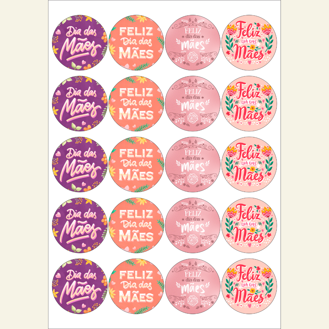 Os 20 apliques são distribuídos igualmente, sendo: 05 unidades de cada modelo, conforme a imagem.